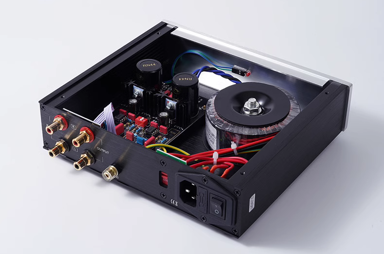 The PCB adopts double-sided gold plating technology, and the wiring is grounded at one point. The chassis is made of all aluminum alloy architecture, and the output and input terminals are 24K gold-plated CMC816